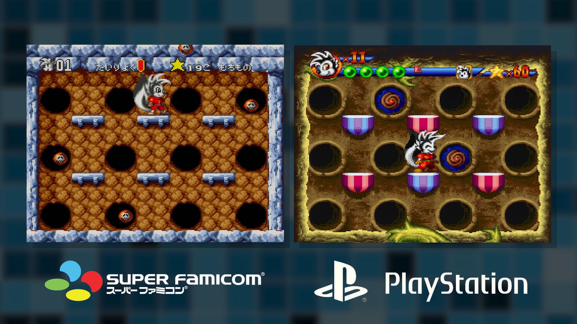 それだけでなく、私たちのゲームは 2 つの全く異なる世代のコンソールで開発され、完成しました。これらを並べて積み重ねると、類似点と相違点が興味深いものになります。発売元の Visit は、より高度な PlayStation に合わせてゲームを強化することを主張しており、基本的にはスーパーファミコン版の再設計版の形をとっています。スプライト、背景アートワーク、レベル デザイン自体がすべて作り直されました。 PlayStation は Super NES よりもはるかに多くのメモリと処理能力を備えているため、ステージごとにより詳細でユニークなアートワークを実現できます。