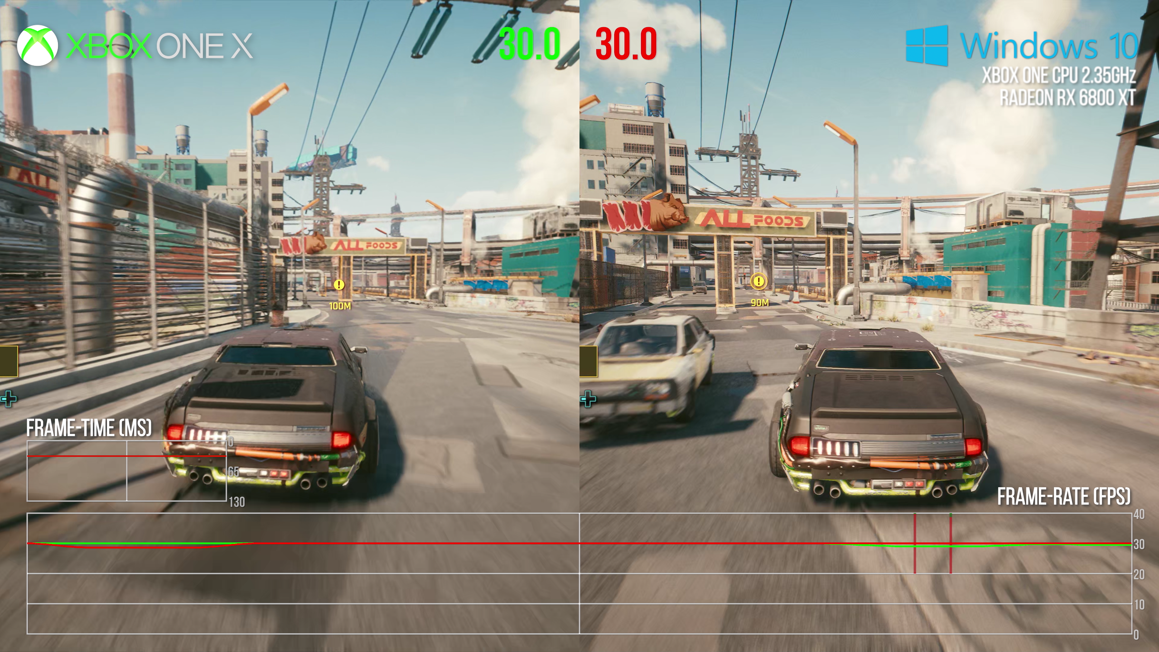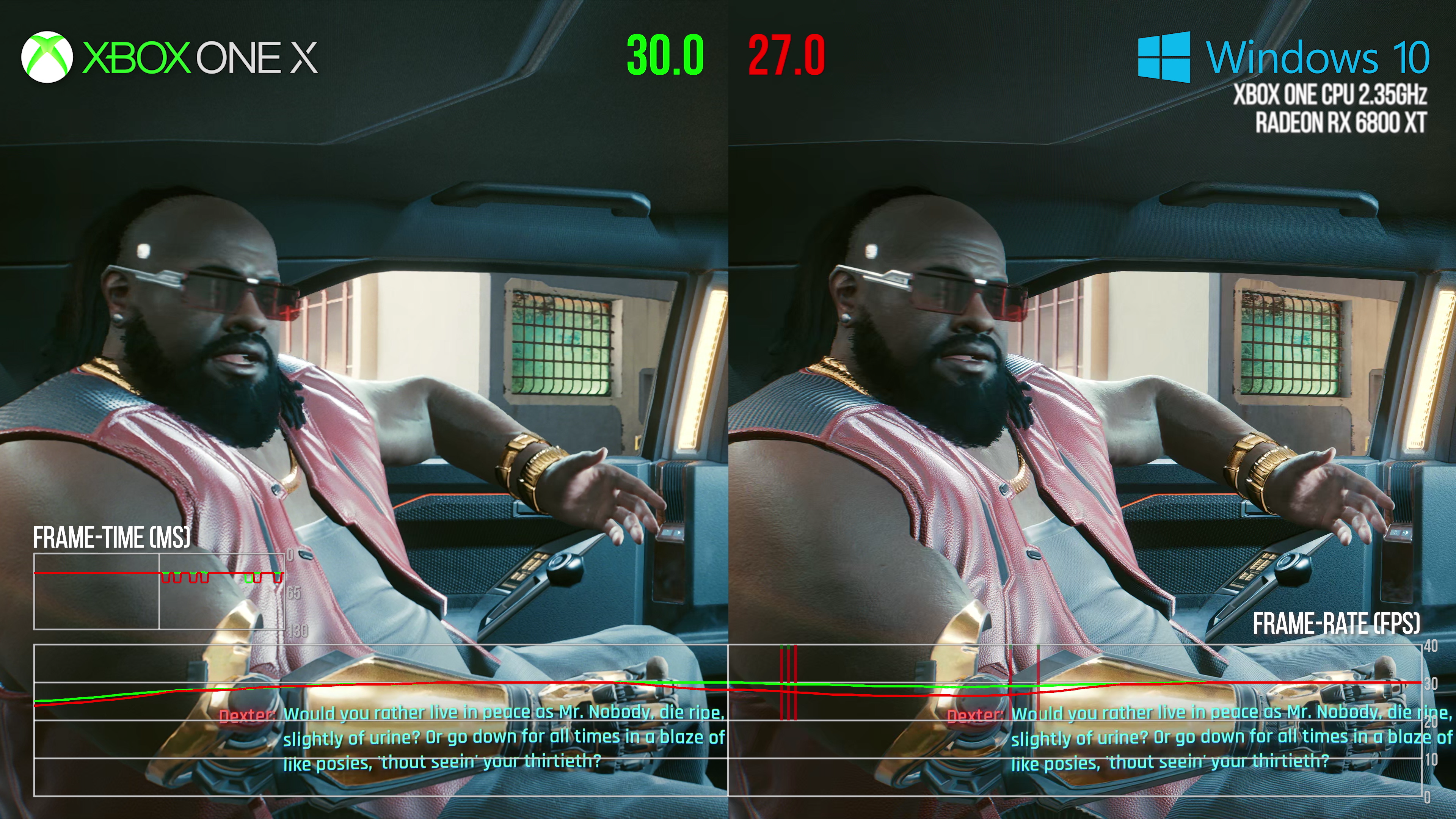 ビデオでわかるように、Xbox One 搭載 PC は、グラフィックス関連のパフォーマンスが低下することなく 4K 30fps で実行できます。 Xbox One X は GPU 負荷を軽減するために動的な解像度スケーリングを使用していますが、PC が Xbox One X を上回った領域では、コンソールに一時的なグラフィックスのボトルネックがまだ存在することを示唆しています。しかし、さらに興味深いのは、Jaguar 搭載 PC が 30fps から低下した場合、ほとんどの場合、Xbox One も低下するということです。これは、前世代マシンでスムーズに動作するサイバーパンク 2077 が直面する問題の中心は、実際には CPU とそれに課される要求であることを示唆しています。ストレージも問題であることが示唆されていますが、両方のシステムで SSD から実行すると、この特定のテストではその問題が排除されます。分析から得られるもう 1 つのポイントは、Xbox One X が下落すると、PC の下落がさらに激しくなる可能性が高いということです。コンソールでははるかに効率的な API が提供される一方、ハードウェアが固定されているため、開発者はそれを具体的にターゲットにできることを忘れないでください。それに加えて、PC 側にあるハッキングされた PCI Express インターフェイスが依然として潜在的なボトルネックとなっており、トラバーサルで見られるパフォーマンスの低下を増幅させる可能性があります。 PC での分割メモリ設定を克服する場合も、かなりのオーバーヘッドが発生する可能性があります。