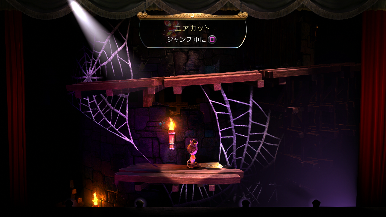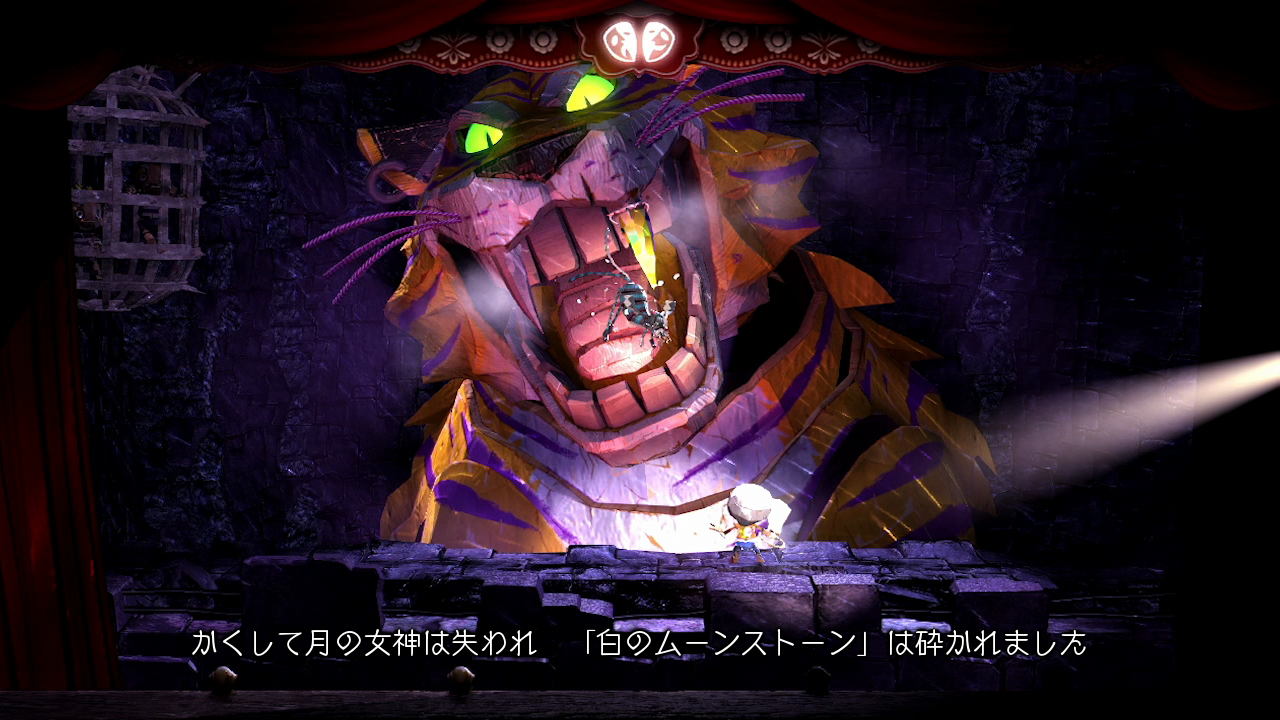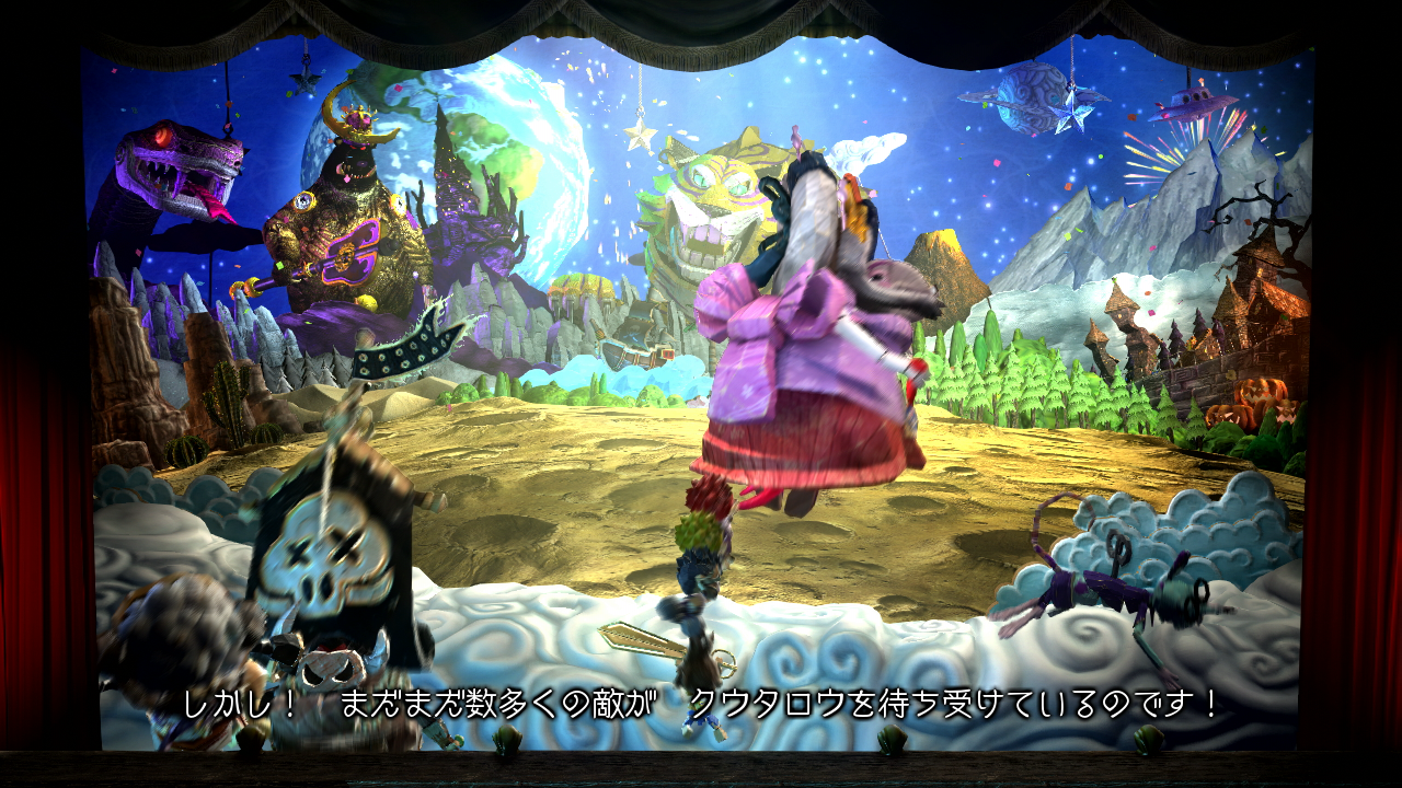 これらの小道具は、スライスのメカニズムに反応して適度な精度を示し、布が細断され、木の塊が地面に転がり、プレイヤーの邪魔を避けるためにこれらのアクションに続いてオブジェクトが再生されます。ただし、見た目が似ているリトルビッグプラネットの現実的な物理主導のゲームプレイとは異なり、Puppeteer はプレイヤーの制御をより堅牢な環境物理学から分離します。プレイヤーは日常的に複雑な物理学に基づく要素と対話しますが、コアの仕組みは予測可能で信頼性が高く、Media Molecule の取り組みよりも高い精度が得られます。