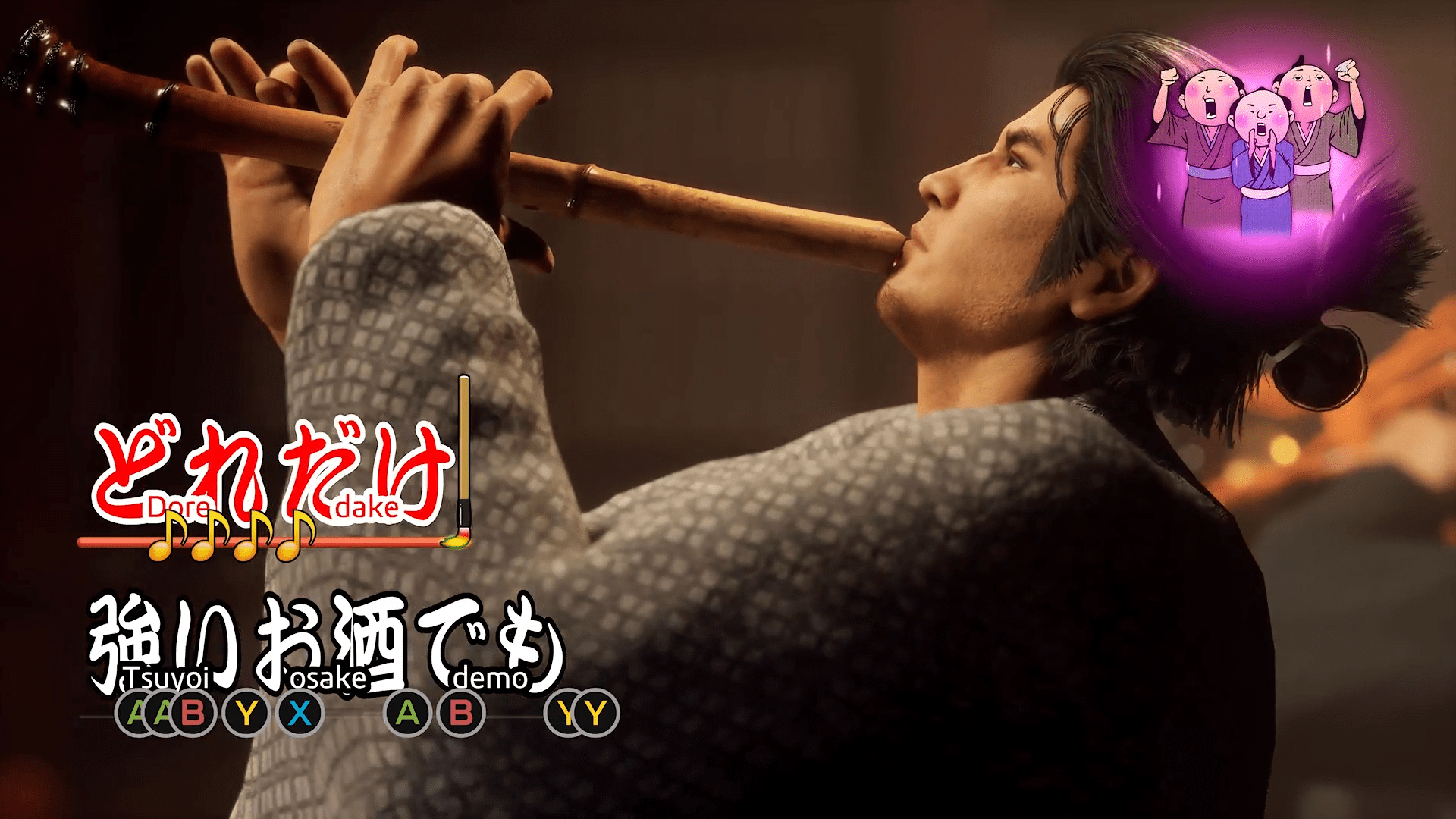 サブストーリーはキョウに人間味と背景を提供しますが、ミニゲームでは楽しいナンセンスを見つけることができます。用意されているすべてのミニゲームを試すことはできませんでしたが (龍が如くファンならご存知のとおり、龍が如くゲームにはたくさんのミニゲームがあります)、試してみたミニゲームは不条理に満ちていて、たくさん笑わせてもらいました。 。新しく追加された「バカみたい」をカラオケで歌いに行きました。伝統的な楽器編成にアレンジされ、リョーマの感動的なフルートソロが完成しました。別の場所では、龍馬は売春宿でアンナに尻を渡され、アンナはストリップジャンケンで彼を徹底的に打ち負かした。