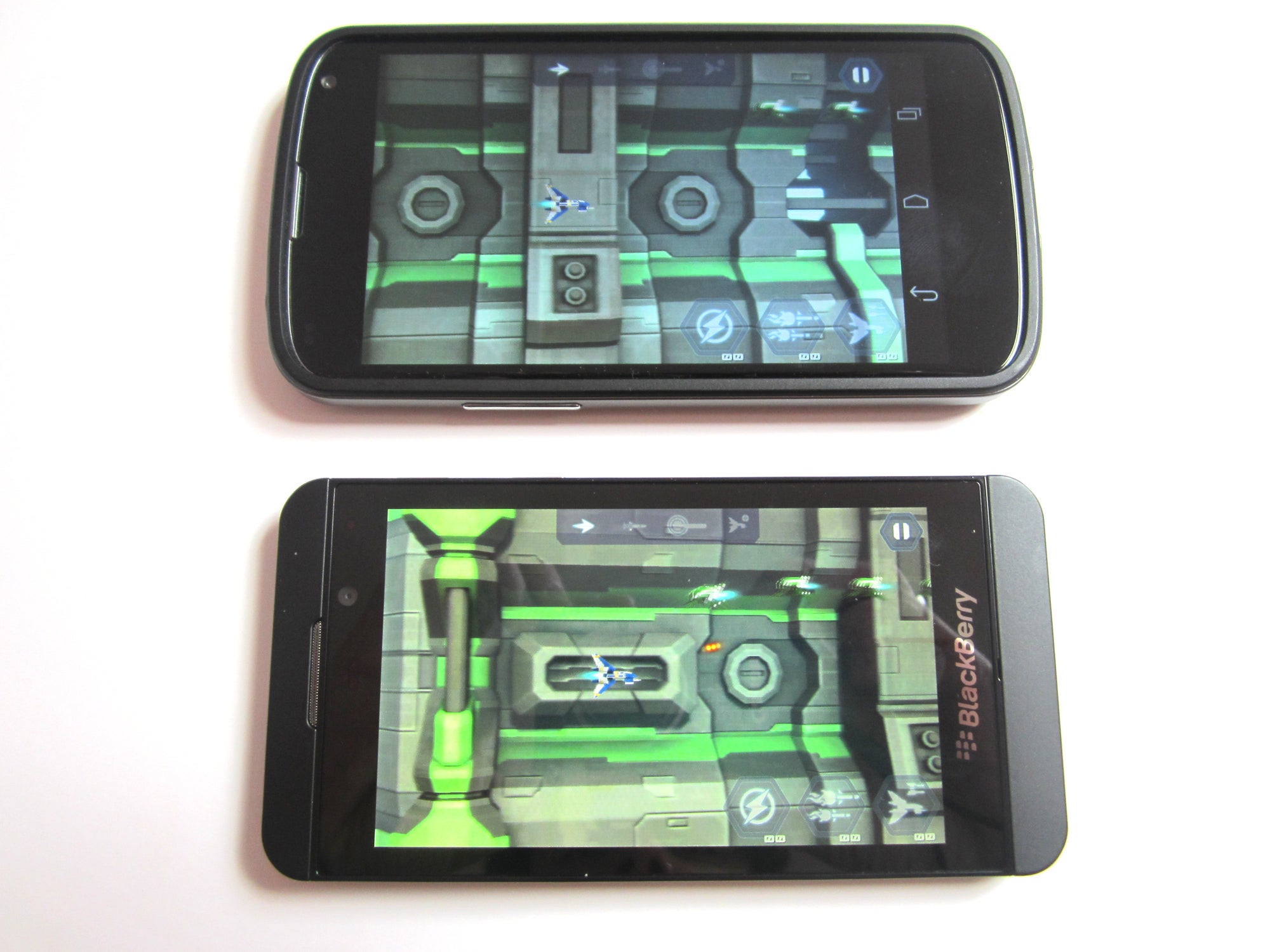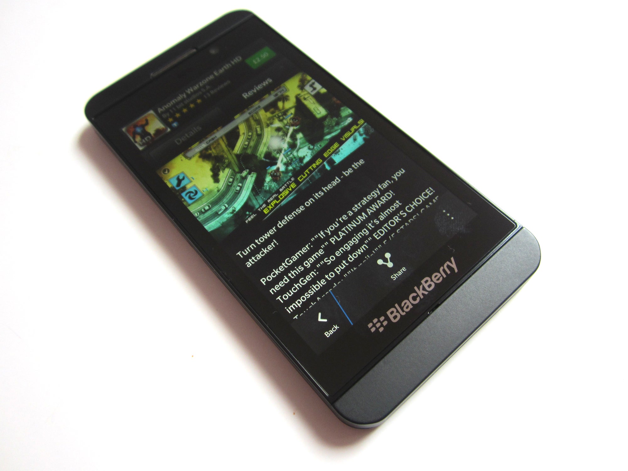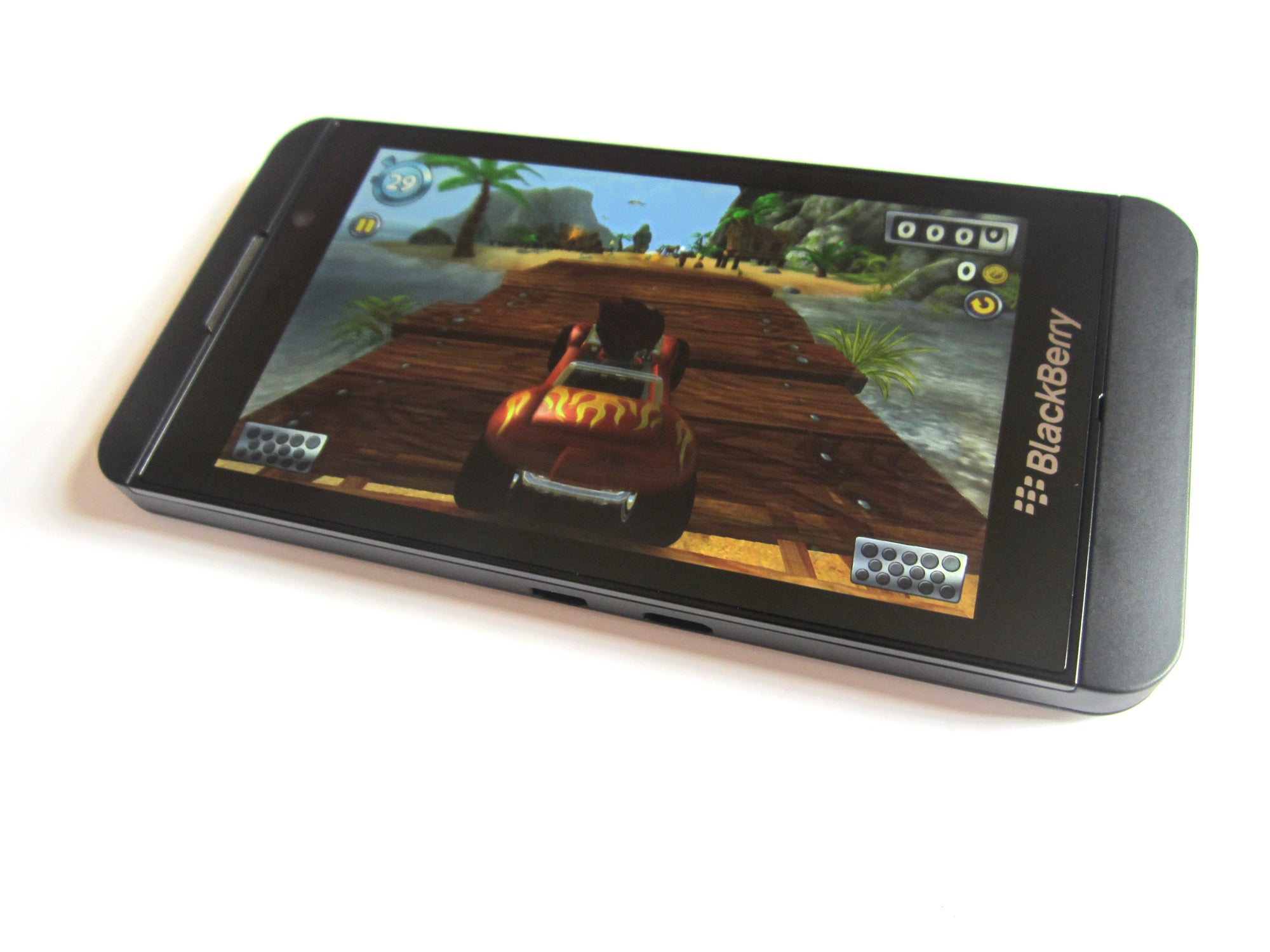 ありがたいことに、ハードウェアは私たちがテストしたインタラクティブなエクスペリエンスにうまく対応しているようです。同じゲームを実行する Google Nexus 4 と並べて配置した場合、Z10 は Qualcomm MSM8960 Snapdragon デュアルコア チップセットを実行しているのに対し、Android ベースのライバルはクアッドコアを搭載しているにもかかわらず、パフォーマンスはほぼ同じです。版。 2GB のオンボード RAM がこれに関係しているのは間違いありません。全体的なパフォーマンスと OS 周辺のナビゲーションはスムーズで途切れがありません。