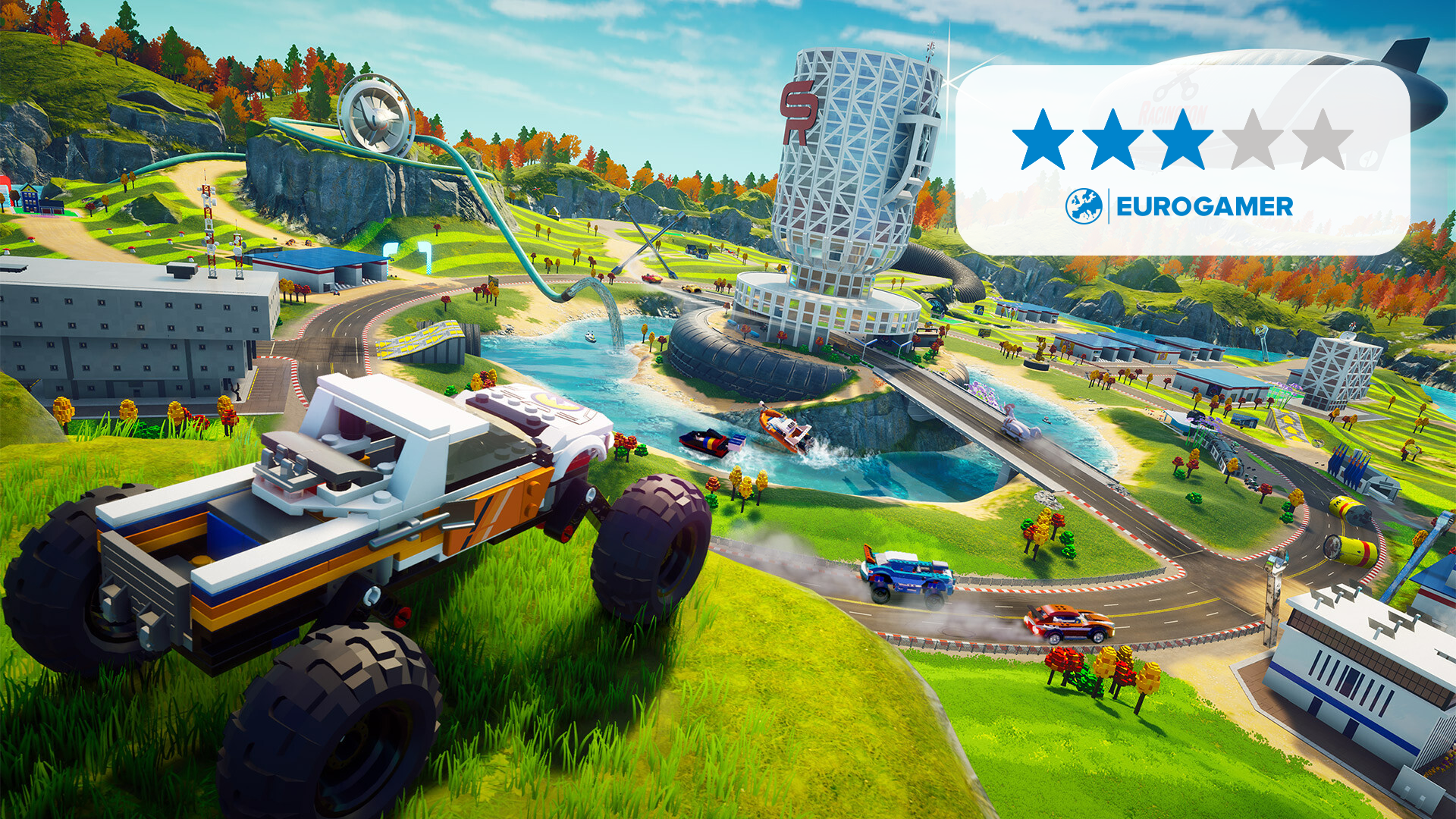 繰り返しになりますが、すべての比較がひどいものであるわけではありません。ここでの冒険の構造は、広大な田園地帯と豊富なアクティビティが散りばめられた Forza Horizon から愛情を込めて受け継いだものかもしれませんが、ブリックランディアと呼ばれるブリックランディアの住民が実際にはホライゾンフェスティバルのスタッフよりもプラスチックが少ない。私はあのシリーズが大好きですが、死んだようなポジティブさ、ハロゲンのような笑顔、陳腐な励ましの攻撃にはいつも身震いします。レゴ 2K ドライブをプレイしていると、10 時 2 時でハンドルに両手を挟み、ヘルメットをかぶって無精ひげを生やした笑みを浮かべているクラッチ レーシングトンの指導に急ぐことができて、なんと安心したことだろう。ニュース報道によると、クラッチは「元大物ドライバーで、現在は新人レーサーを訓練するカリスマ指導者だ。それはあなたにとって幸運であり、物語にとっても好都合だ!」