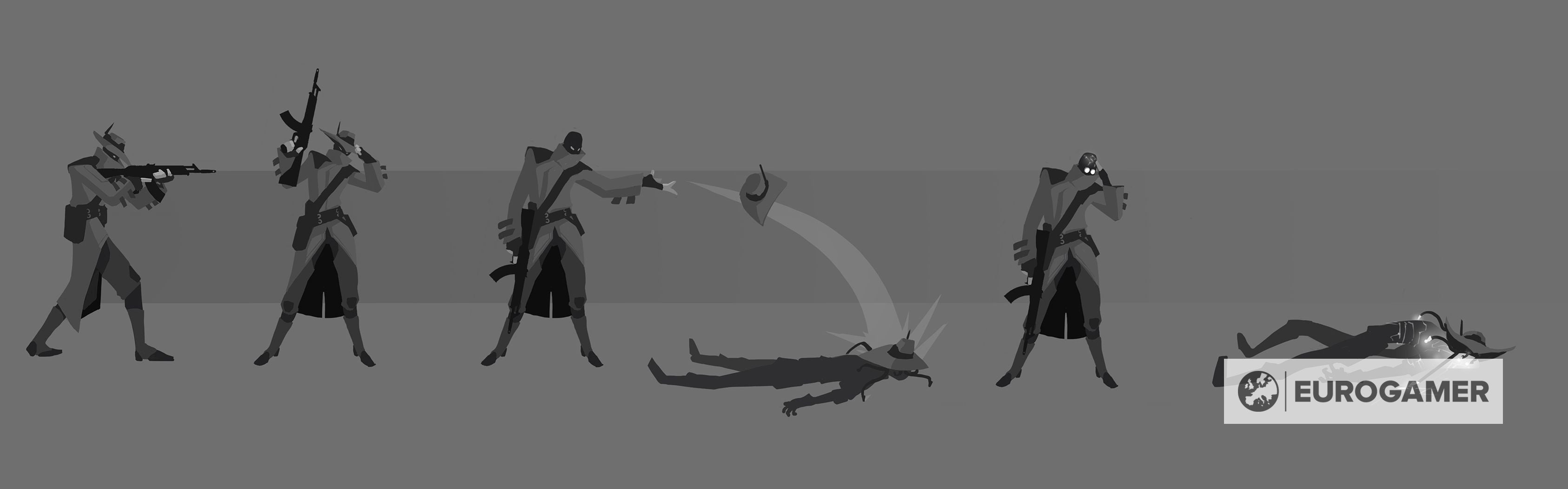 この種の緊張の高まりをもたらす単一の定量化可能な要因を突き止めるのは難しいが、ライオットは、それはすべて基本にあると主張するだろう。最初のピッチに戻ると、これはまずコンピテンシーに基づいて構築されたゲームであり、明らかにそれが意味することは、あらゆる些細な点とは明らかな違いです。アート チームは、たとえば、マップのプレイ可能な高さ範囲内にあるものはすべて少し落ち着いて余分なものを取り除き、その上のエリア (屋根、地平線など) は許可するなど、「クリーン ゾーン」の作成を強調しました。ポップ。他の要素は「可読性階層」に従って図示されており、エージェントはプレイ可能なスペースの上に目立ち、ガンの目に見える部分の上に目立ち、プレイ不可能なもの全体の上にあります。マップ自体では、遮蔽物が非常に正確に割り当てられ、明確な狙撃経路と意図的に遮られた視界からなる「長いレーン」の精選されたスパゲッティを形成しています。すべてのキャラクターには同じサイズのヒットボックスがあります。タグ付けがあり、撃ち抜くことができる特定の壁があり、Riot が徹底的に考え (そして話し) た、一見無限に見える一連の細かい点が続きます。