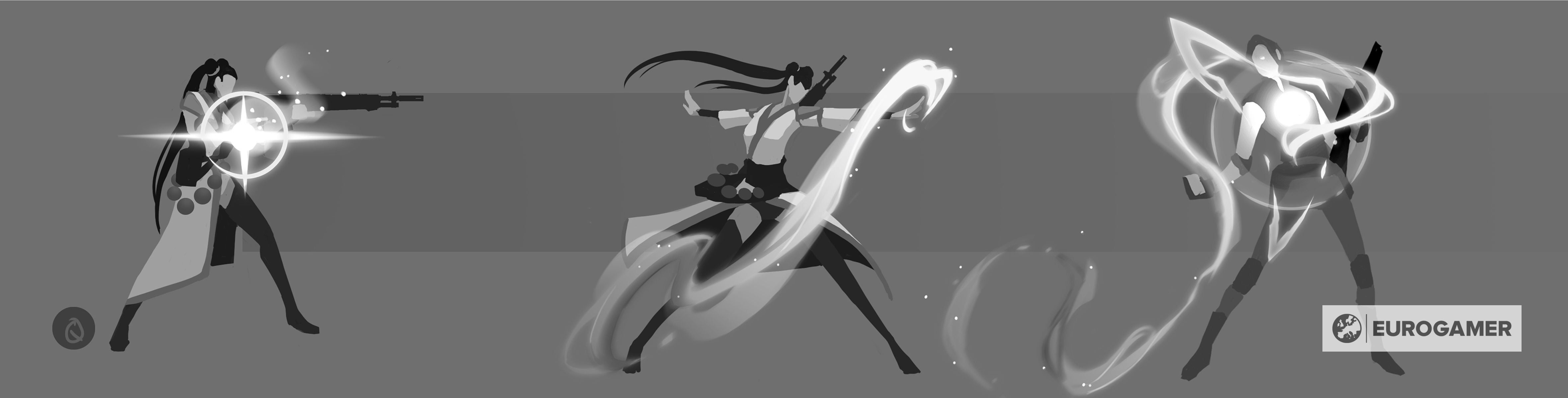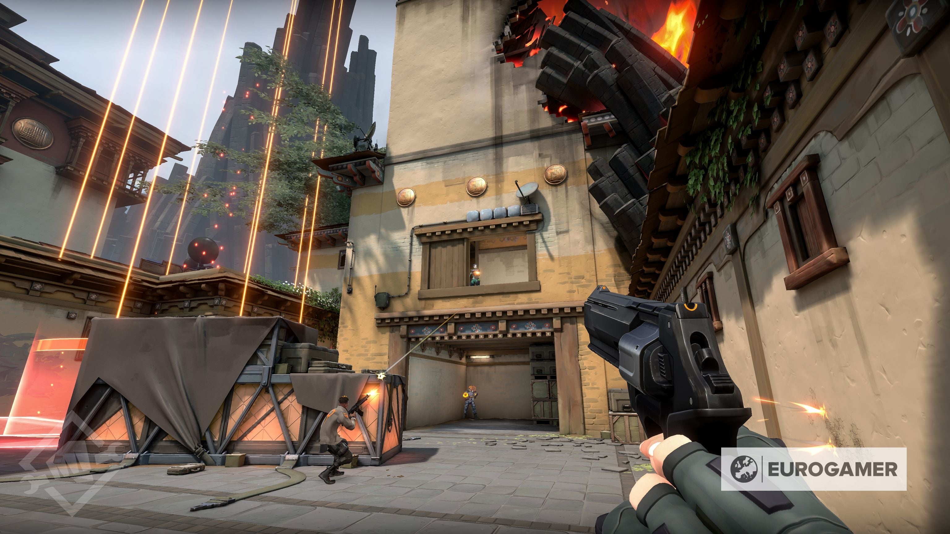 ライオットは名前を明かしたくないが、能力自体は非常にオーバーウォッチらしい。主な違いは意図です。Valorant の目的は「まず戦術的なシューティングゲーム」になることであり、他のすべてはそのために役立ちます。それは、すべてのエージェントが依然として主に射撃によってダメージを与えることを意味する(残念なことに、リードデザイナーのトレバー・ロムレスキ氏は、固有の「直感的に満足できる」感触と認識性を維持するためであると、現実世界の銃で撃った)とエージェントの能力を使用した。ゾーニング、偵察、デバフ、あるいは単に入り口を露骨に壁で囲うなど、常にその役割を果たしています。ハンゾーのようなソヴァ(私が滞在していた途中でハンターから名前を変更)など、特にこの世のものとは思えない、またはオーバーウォッチっぽいと感じるエージェントでさえ、偵察パルスアローとより大きなアルティメットを発射できます。壁を通り抜けることができますが、依然として最初は銃撃に依存しており、他の人たちと同じ銃を使用しています。