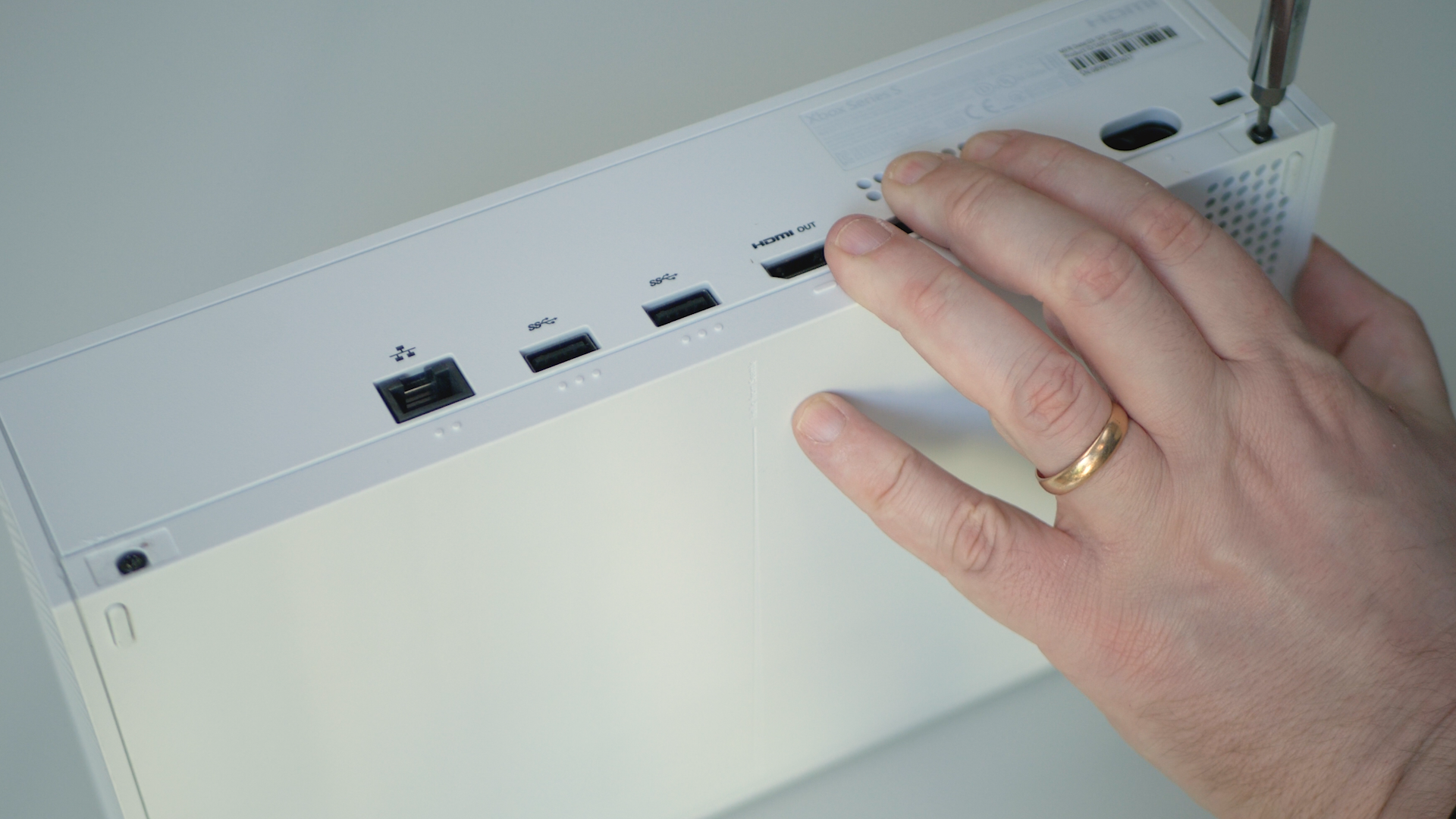 このページのビデオは、Series S へのアクセスがいかに簡単であるかを物語っています。ユニット背面のプラスチックのステッカーを剥がすと、2 本のネジが現れます。 Torx 8 ドライバーを用意すれば (他の工具は必要ありません)、システムをメインボードまで取り外すのは簡単です。旅の途中で、最小限の手間で主要なモジュールの取り外しと再挿入を可能にする、ほぼプラグアンドプレイの設計に気づくでしょう。メインボードを完全に取り外すと、NVMe ドライブがシステムの背面に接続されていることがわかります。 SSD を正しくフォーマットできれば (そしてドライブがすぐに利用できるのであれば!)、ユーザーによるアップグレード自体が簡単になるでしょう。
