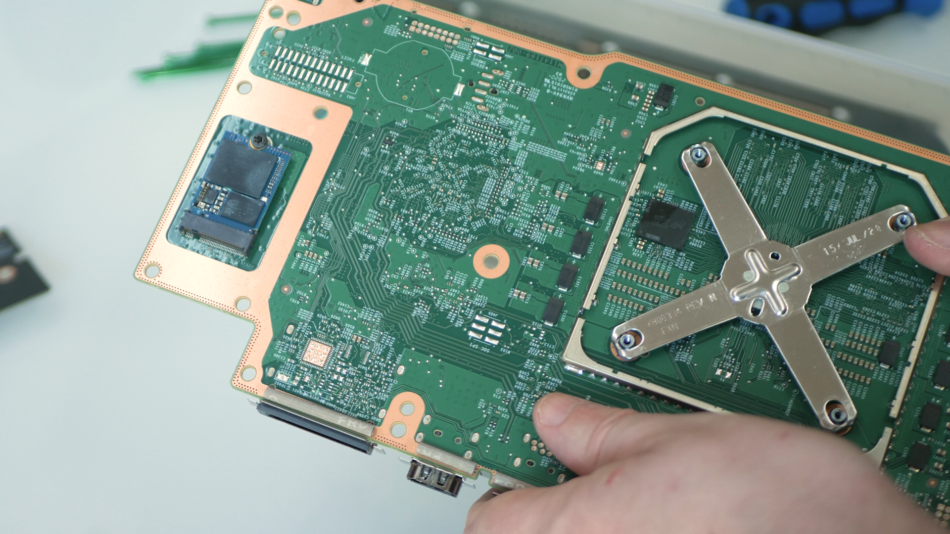 さらなる進歩が意味のある程度に妨げられるのは、メインボード自体を取り外そうとするときだけです。ヒートシンクを取り外すには、ボードの背面にある X クランプを少し強引に使用する必要があり、それを元の位置に戻すのは困難です。アルミニウムと銅のヒートシンクを取り外すと、メモリチップの周囲に金属製のシールドがあり、一度取り外すと二度と元に戻らない可能性があります。簡単に言えば、Series S 内での作業は十分に簡単ですが、ある程度までです。システムが提供するすべての機能を確認するには、コンソールに取り返しのつかない損傷を与える必要がありますが、これはハードウェアがすでに故障している場合にのみ考えられます。